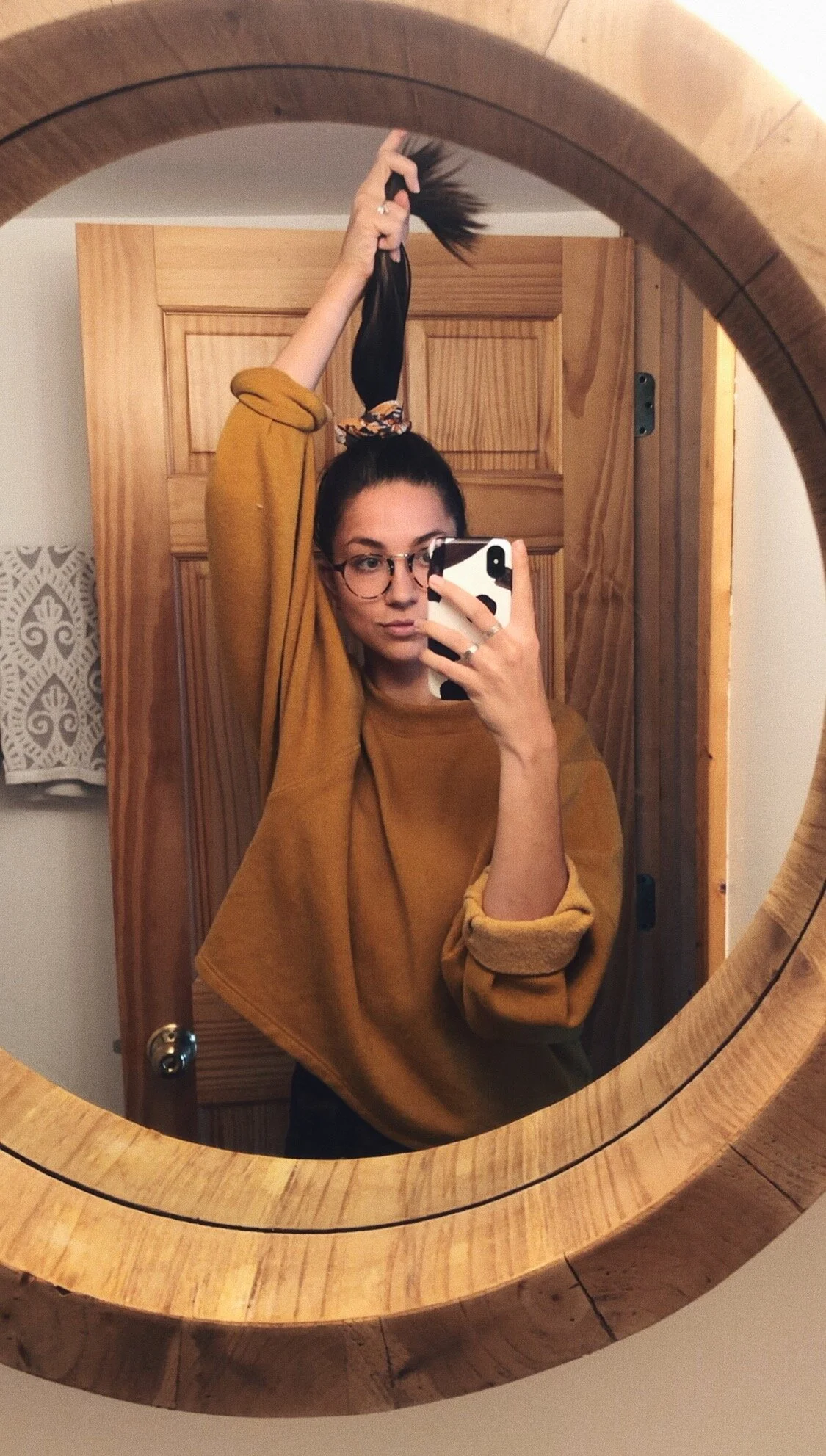 Actual footage of me CONSTANTLY debating if I should chop my hair or keep growing it out. Ever since it started growing so fast, I have gotten WAAAAY more bold with constantly chopping it because I know it’ll grow back so fast, ha! Also, remember that time that I chopped 10 inches off my own hair on quarantine???? Goooood times.